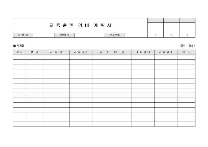 교육훈련 경비 계획서