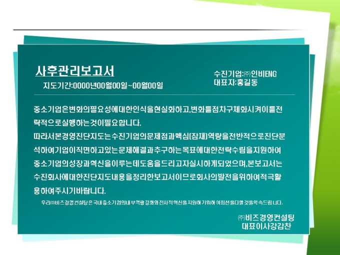 산업기계 관련 컨설팅 사후관리 보고서입니다.