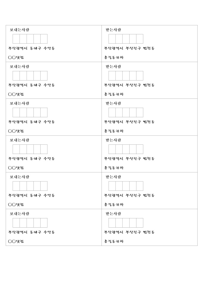 9,000원/월주소용 라벨(9.91cm × 3.31cm 12칸)입니다. 시중에서 판매하는 라벨 용지에서 출력하셔야 합니다. * 판매용 라벨과 사이즈가 다를수 있으니 확인 후 사용하십시요.