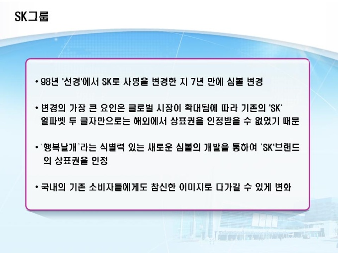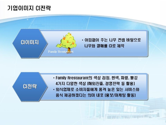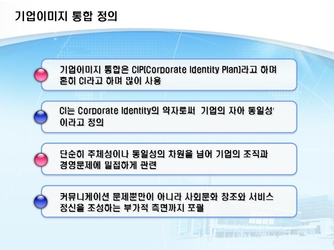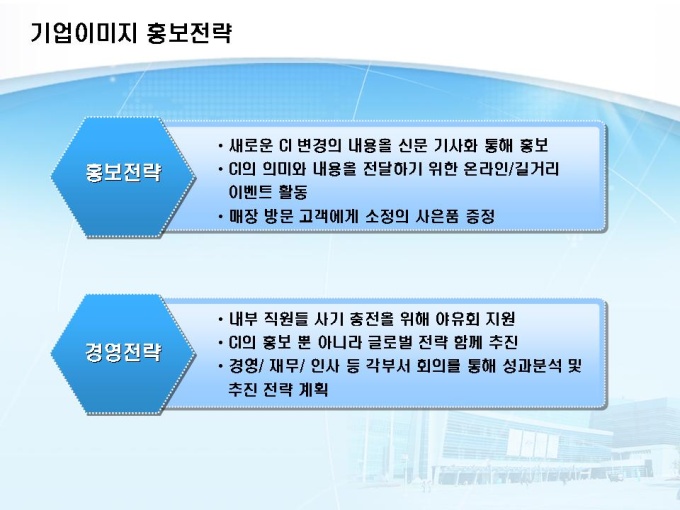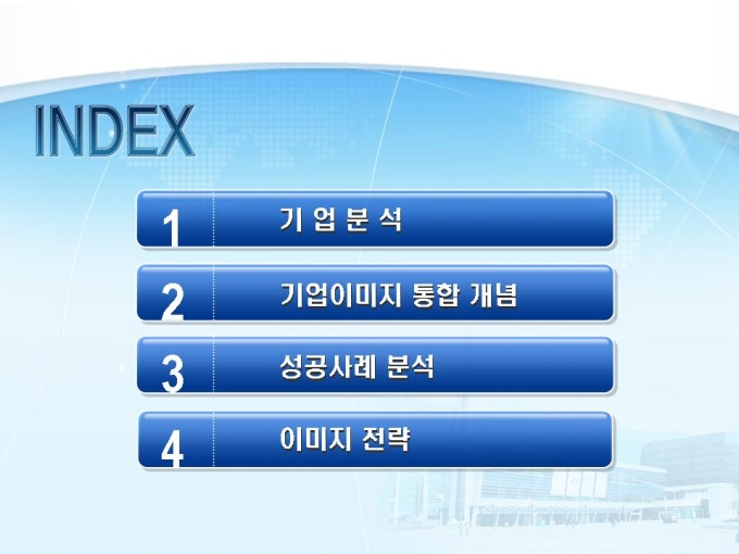 기업이미지 통합전략(CIP/CI)에 관한 보고서입니다. 목차는 1.기업분석 2.기업이미지 통합 개념 3.성공사례 분석 4.이미지 전략으로 구성되어있습니다.