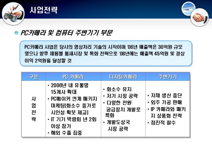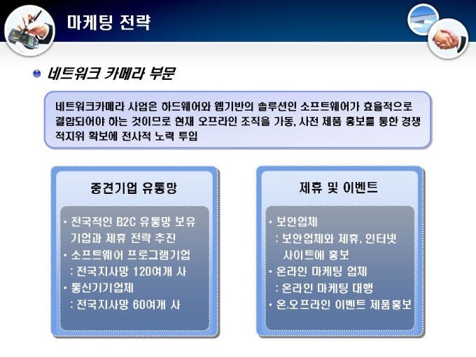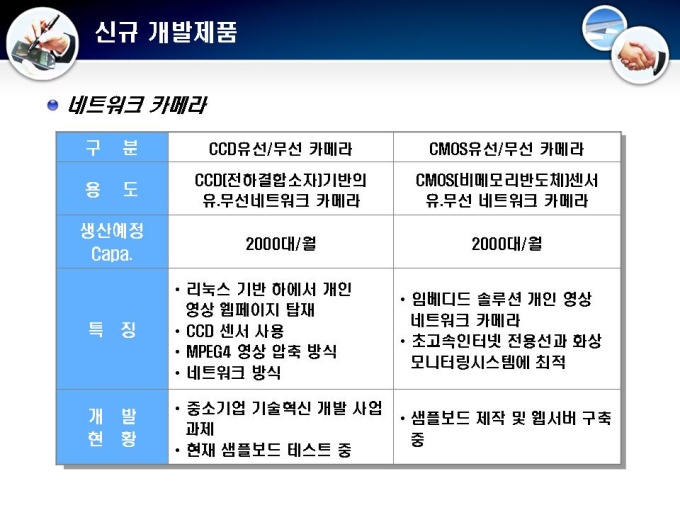 통신장비 제조업체의 기술개발 사업계획서입니다. 목차는 1.회사소개 2.생산제품 3.시장 및 운영전략 4.추정 재무계획으로 구성되어있습니다.