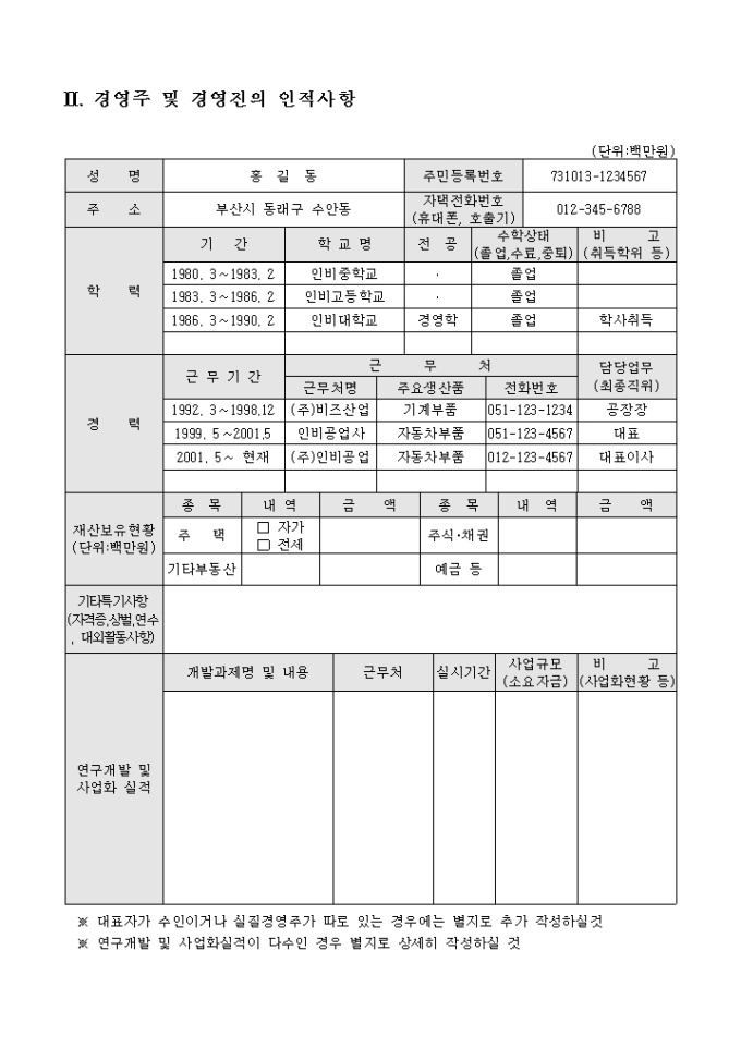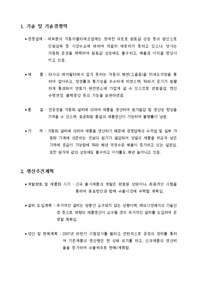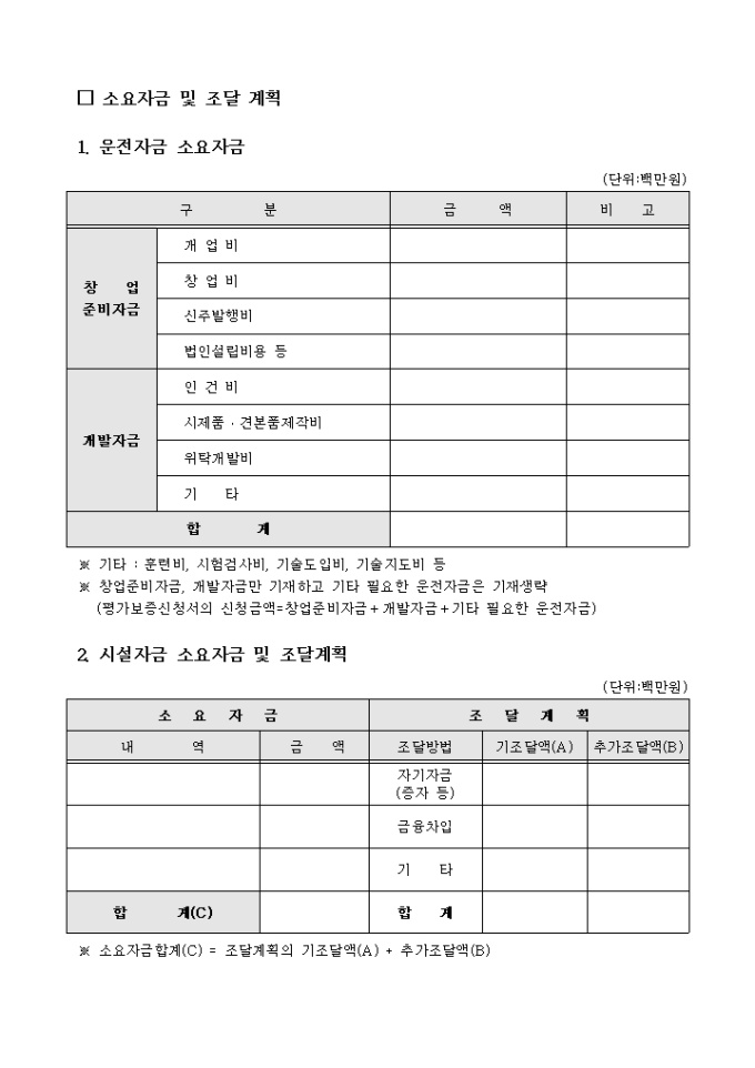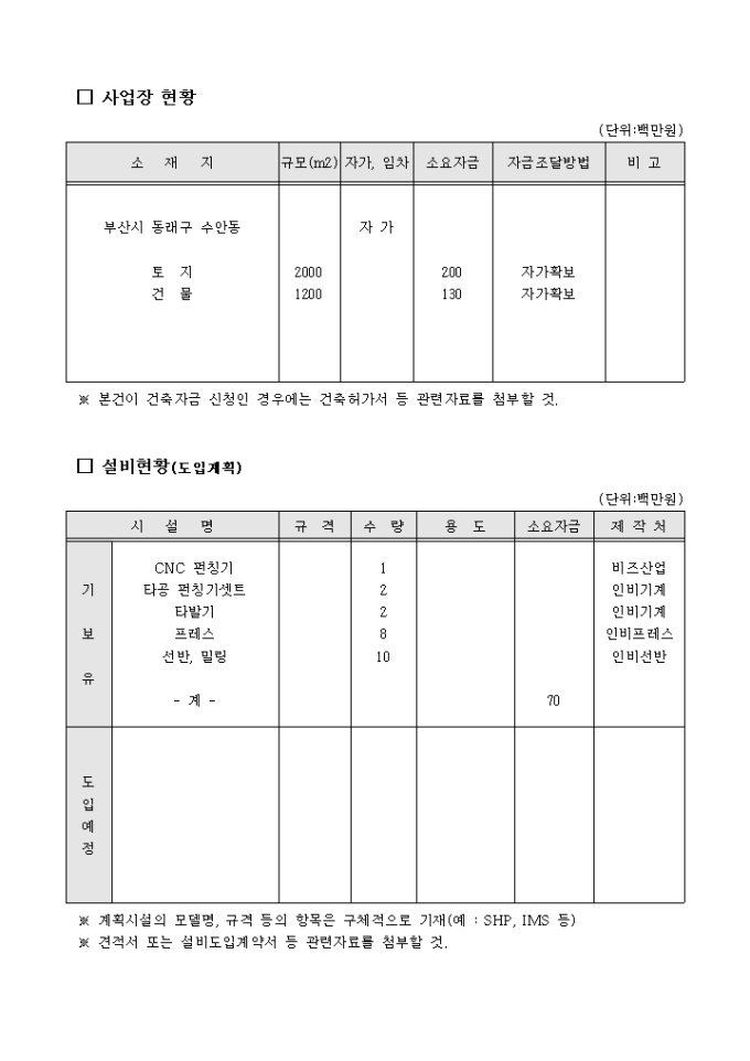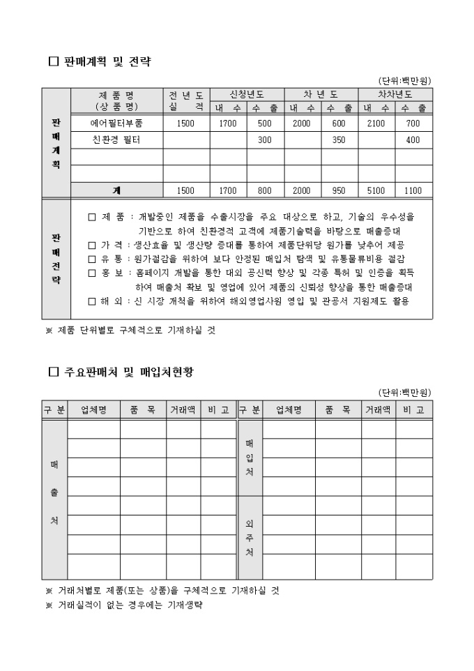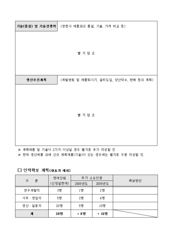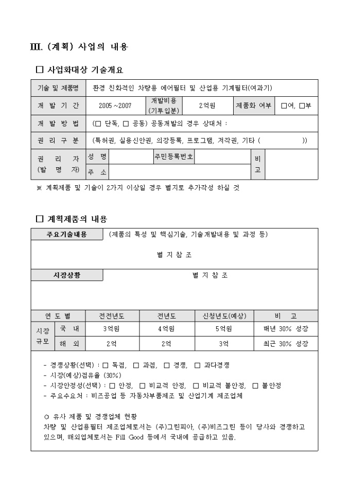 공업기술평가 신청서, 사업계획서