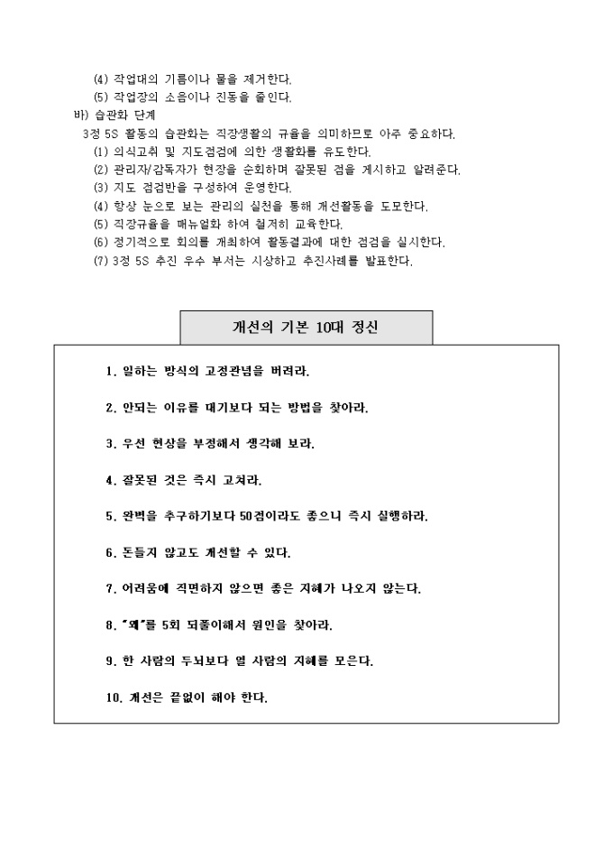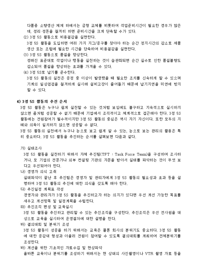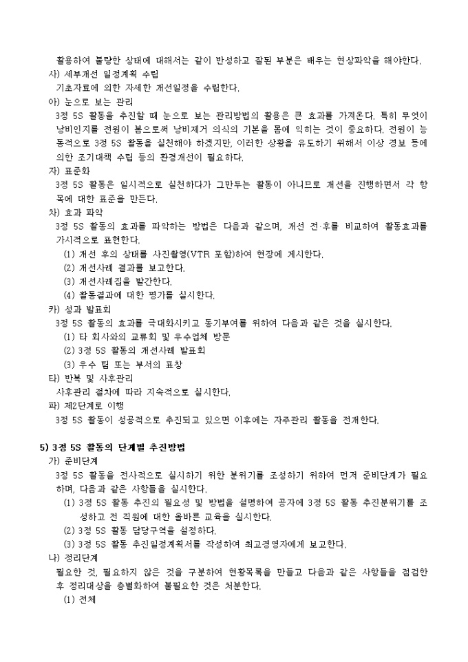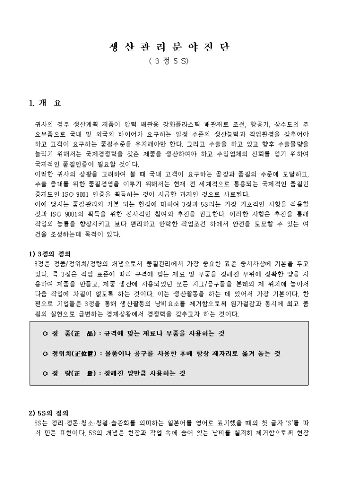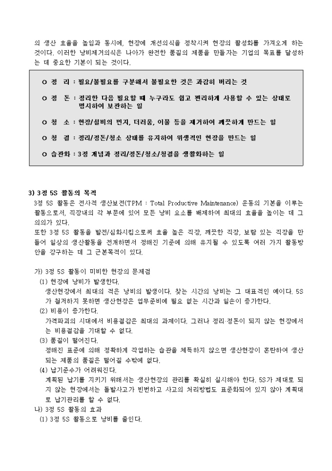 생산관리분야에서 품질관리의 기본 되는 현장에 대하여 3정과 5S라는 가장 기초적인 사항에 대한 개요 및 정의입니다.