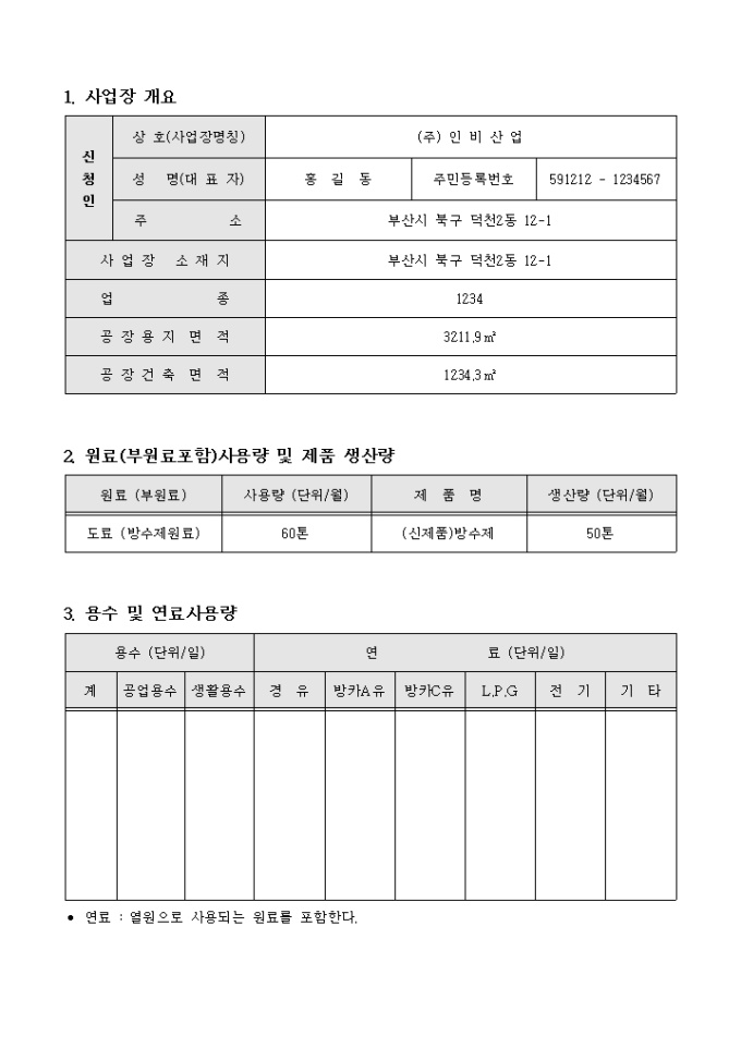 9,000원/월회사의 환경성에 관한 검토자료 샘플입니다. 사업장개요, 원료사용량 및 제품 생산량, 용수 및 연료사용량, 제품 생산 공정도 등의 항목으로 구성되어있습니다.
