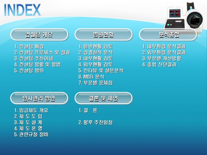 병원 경영컨설팅 보고서입니다. 연봉제, 급여방안에 대한 내용으로 목차는 1.컨설팅 개요 2.병원현황 3.분석종합 4.인사관리 방안 5.결론 및 제언입니다.