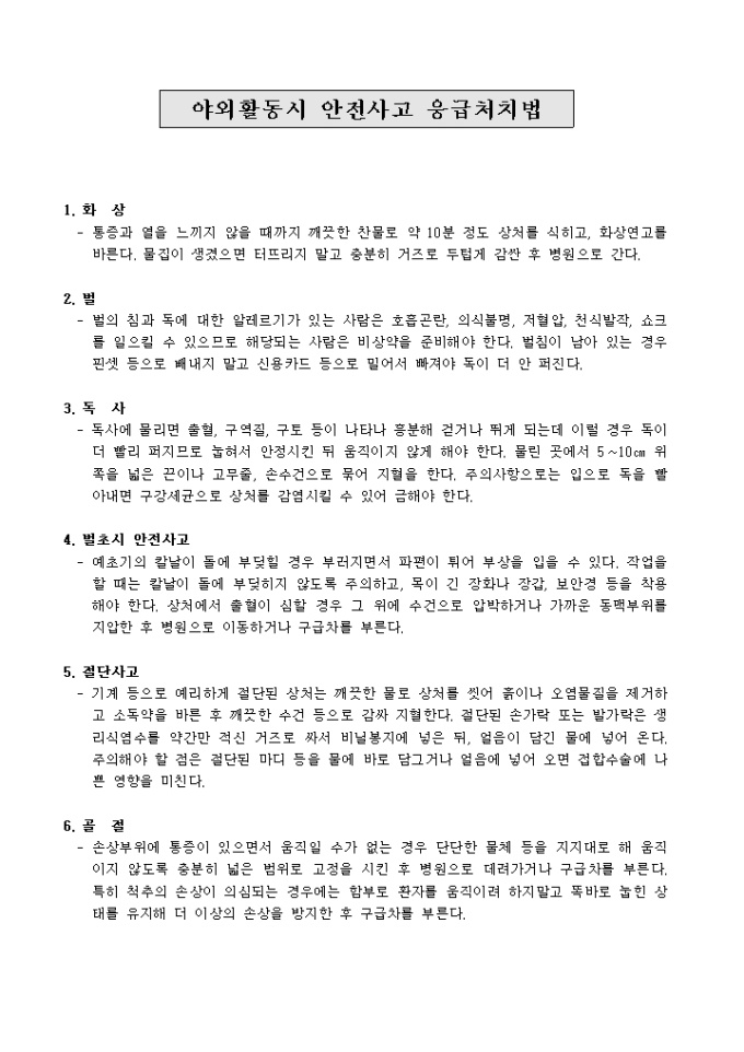 야외활동시 안전사고 응급처치법
