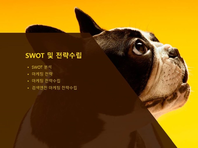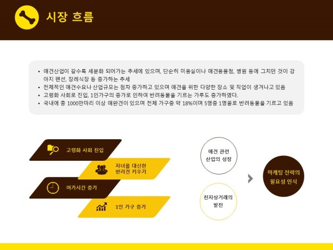 애견제품, 디자인 용역 사업계획서입니다. 온라인 마케팅계획 수립에 관한 내용으로 목차는 1.기업 일반현황 2.트렌드 분석 3.관련시장 분석 4.SWOT 및 전략수립 5.온라인마케팅 전략수립입니다.