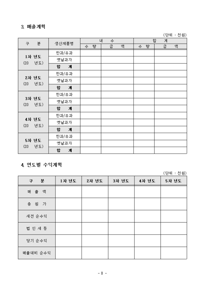 9,000원/월실제 벤처기업에서 사용한 과자제조관련 식품 사업계획서입니다. 회사현황, 경영현황, 투자계획 등을 상세하게 작성할 수 있습니다.