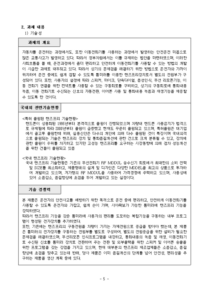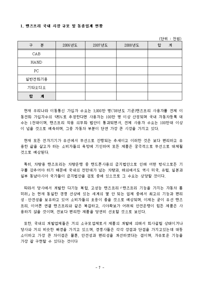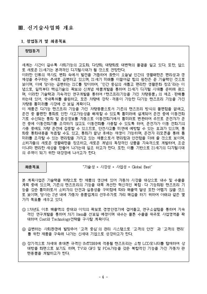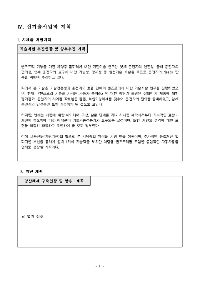 신기술창업보육사업 신기술사업화계획서(차량용품)