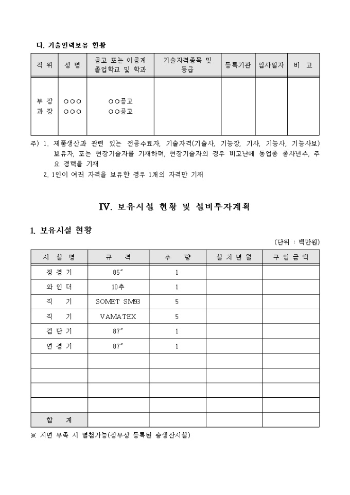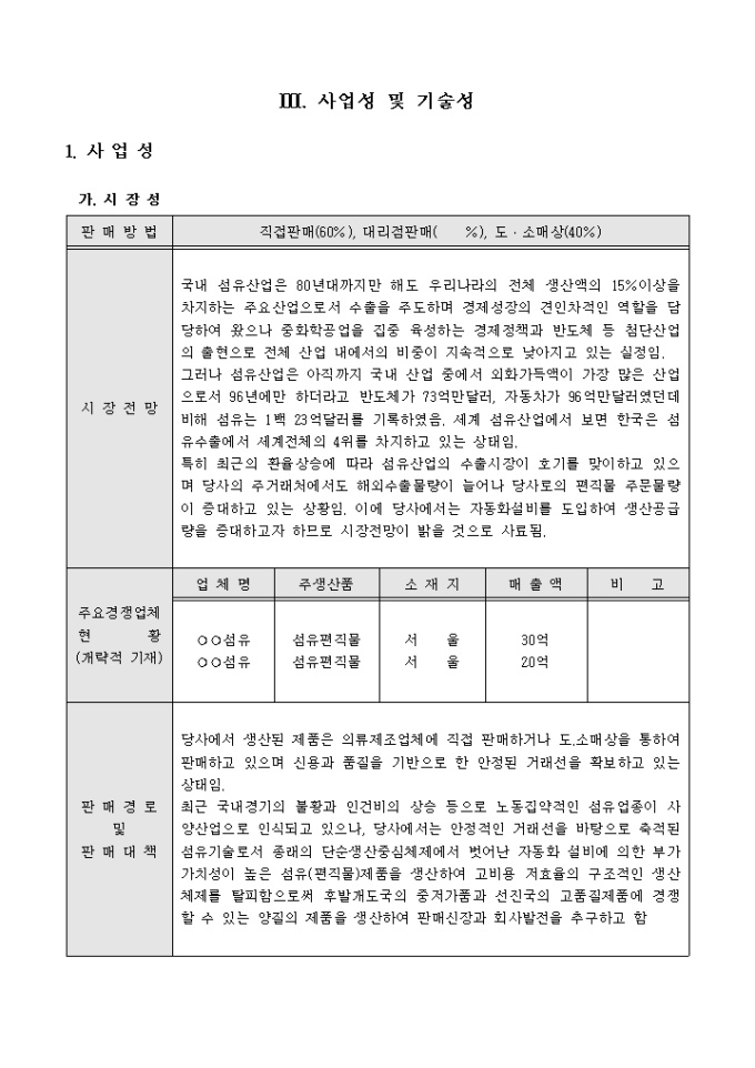 9,000원/월실제 벤처기업에서 사용한 섬유관련 자동화사업 자금지원신청서 샘플입니다. 서류심사에 통과한 서식예제입니다. 업체개요, 제품 및 영업상황, 사업성 및 기술성, 보유시설현황 및 설비투자계획 등으로 구성되어 있습니다.