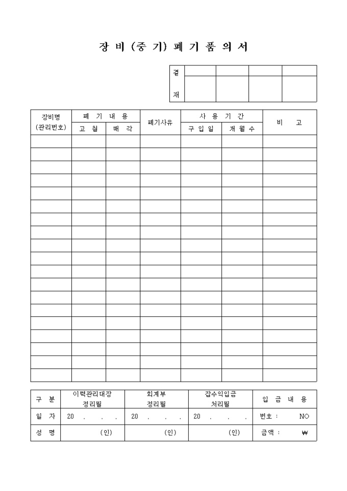 9,000원/월장비,중기,폐기품의서 입니다.