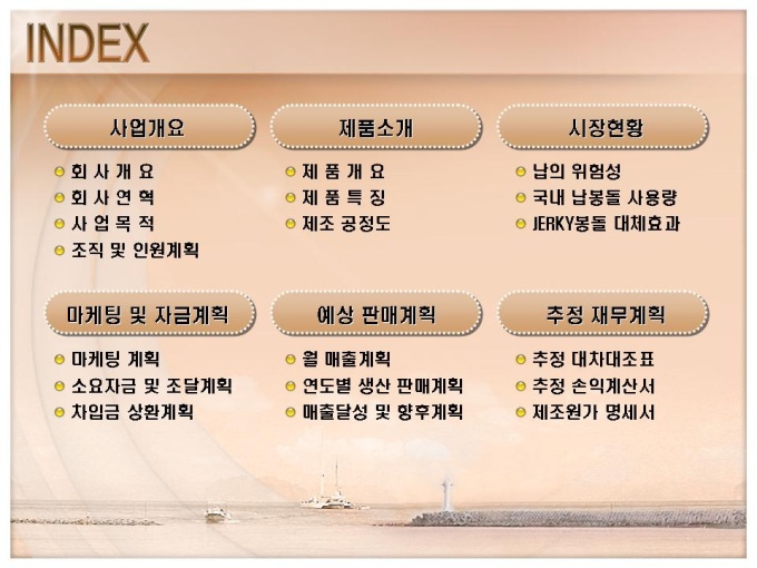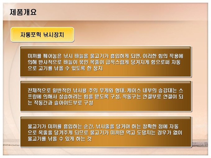 레저용품 개발 사업계획서로 낚시용품 제조에 관한 내용입니다. 목차는 1.사업개요 2.제품소개 3.시장현황 4.마케팅 및 자금계획 5.예상 판매계획 6.추정 재무계획으로 구성되어있습니다.