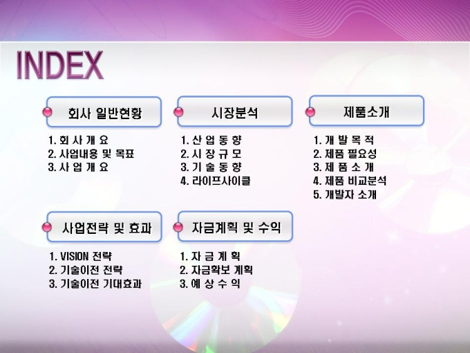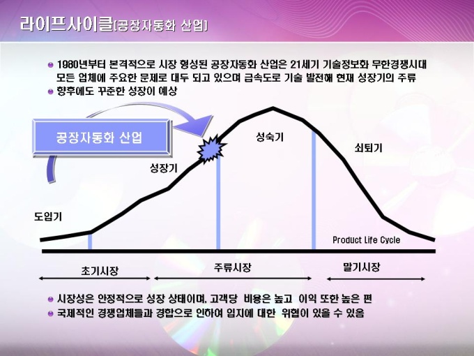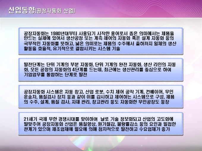 공장자동화기술 소프트웨어 개발 사업계획서입니다. 목차는 1.회사 일반현황 2.시장분석 3.제품소개 4.사업전략 및 효과 5.자금계획 및 수익