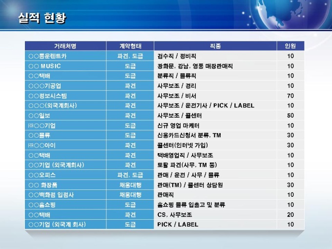아웃소싱 사업 회사소개서(인력채용 제안)