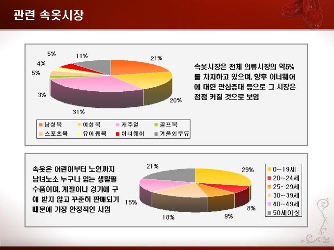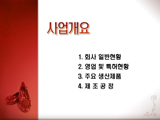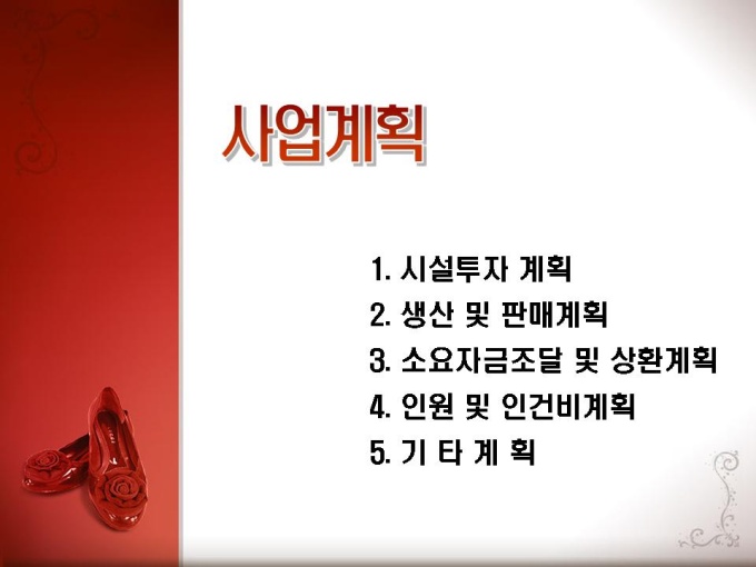 패션분야 사업계획서로 기능성 신발과 속옷에 관한 내용입니다. 목차는 1.사업개요 2.시장현황 3.사업계획 4.추정 재무제표 5.수익성.경제성으로 구성되어있습니다.