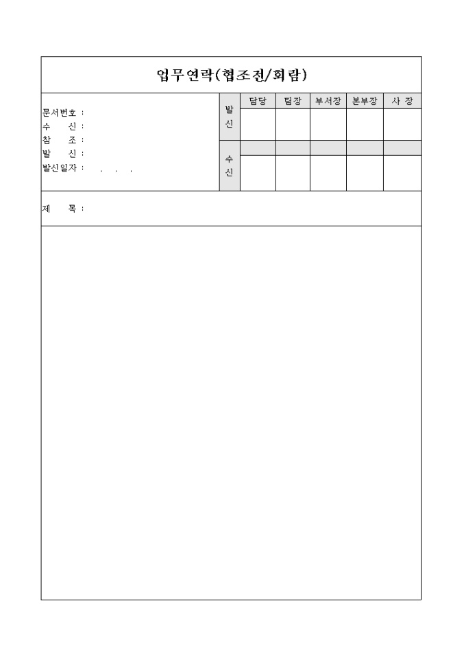 9,000원/월업무연락의 협조전에 회람을 안내하는 표형식의 회람문입니다.