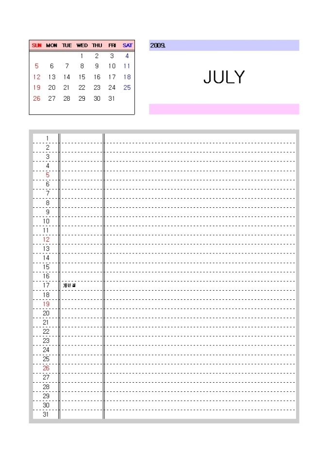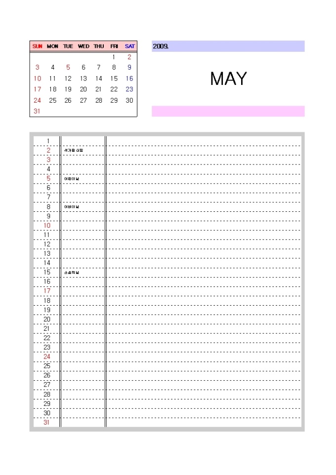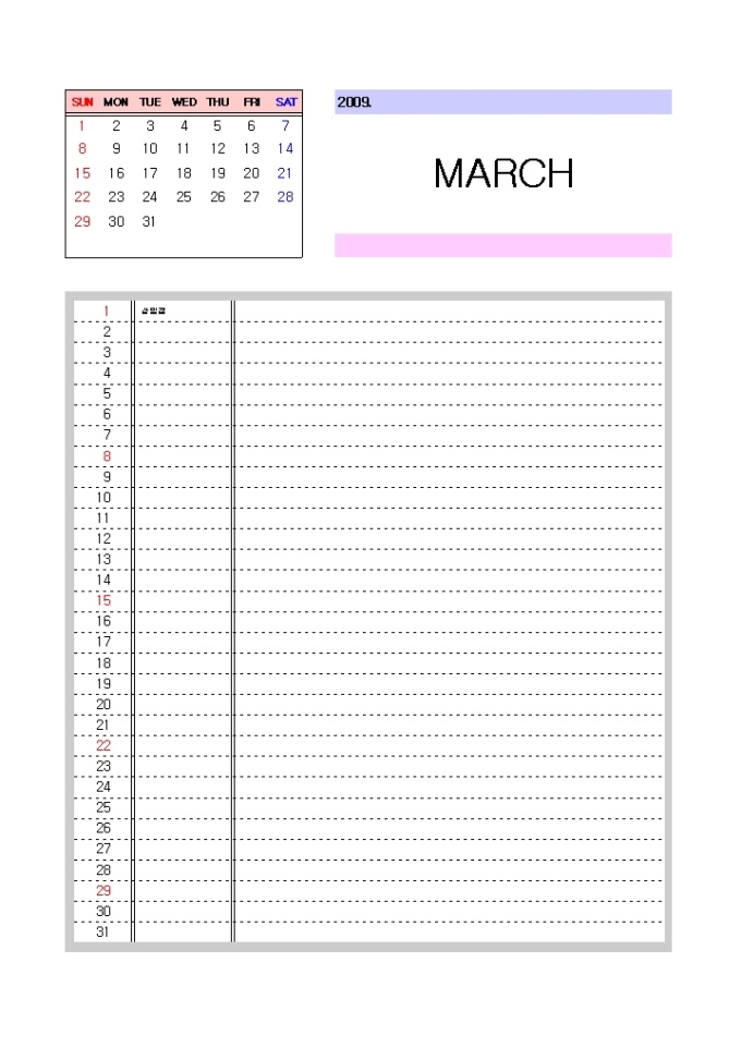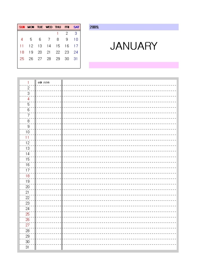 9,000원/월작은달력과 메모를 쉽게할 수 있는 일별 메로란으로 구성되어 있는 2009년 달력입니다.