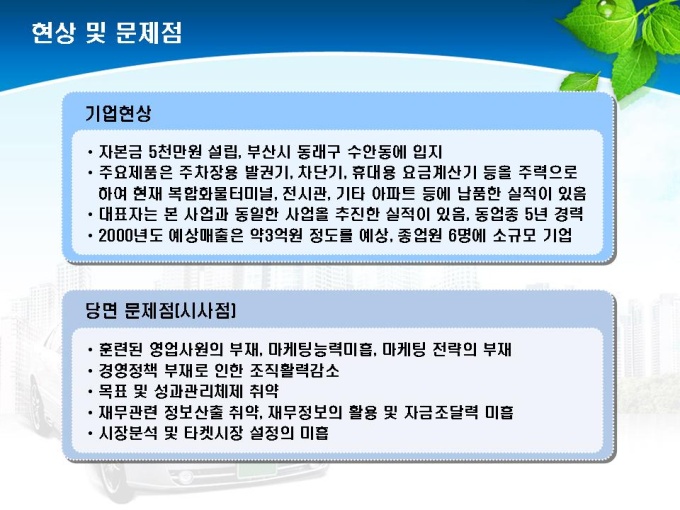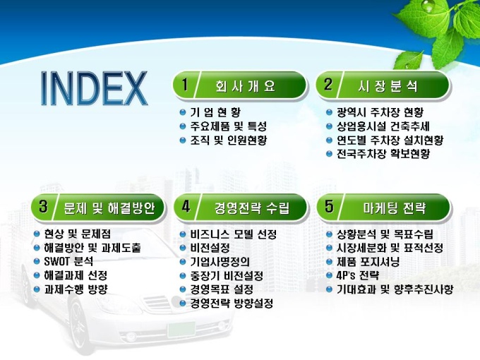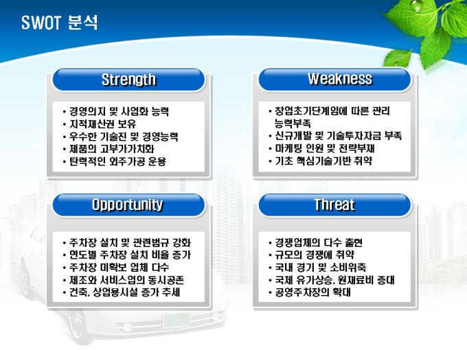 통신기기 중 주차차단기, 발권기 제조업체의 전략 사업계획서입니다. 목차는 1.회사개요 2.시장분석 3.문제 및 해결방안 4.경영전략 수립 5.마케팅 전략으로 구성되어있습니다.