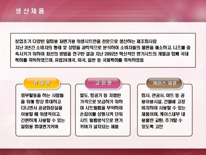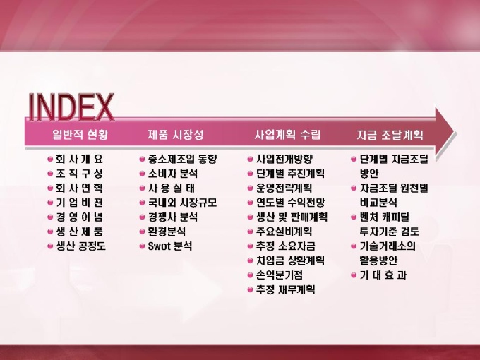 화학합성수지 제조업 창업 사업계획서입니다. 목차는 1.일반적 현황 2.제품 시장성 3.사업계획 수립 4.자금 조달계획으로 구성되어있습니다.