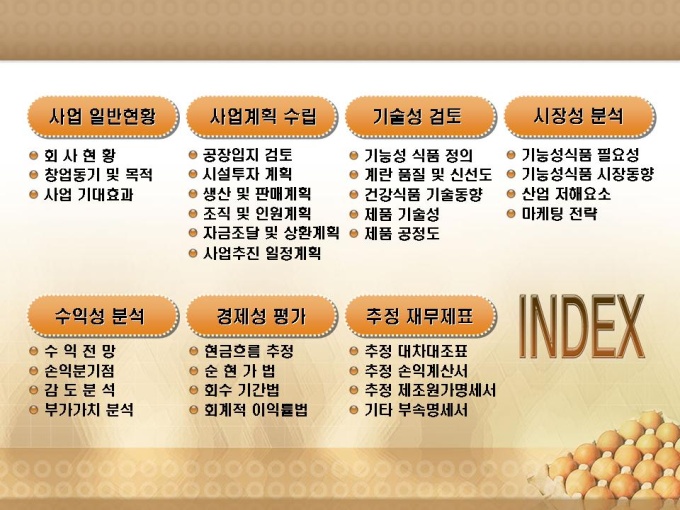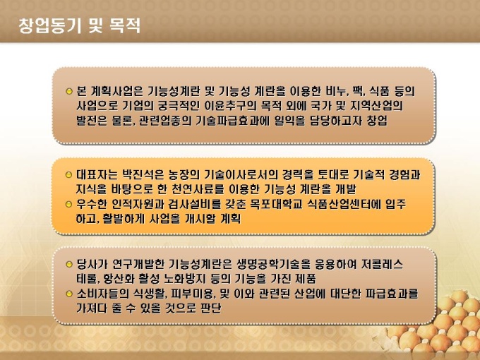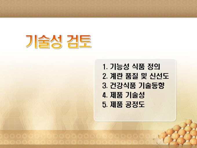 기능성계란의 음식료품 제조 사업계획서입니다. 목차는 1.사업 일반현황 2.사업계획 수립 3.기술성 검토 4.시장성 분석 5.수익성 분석 6.경제성 평가 7.추정 재무제표로 구성되어있습니다.