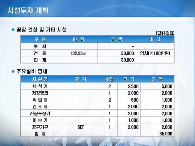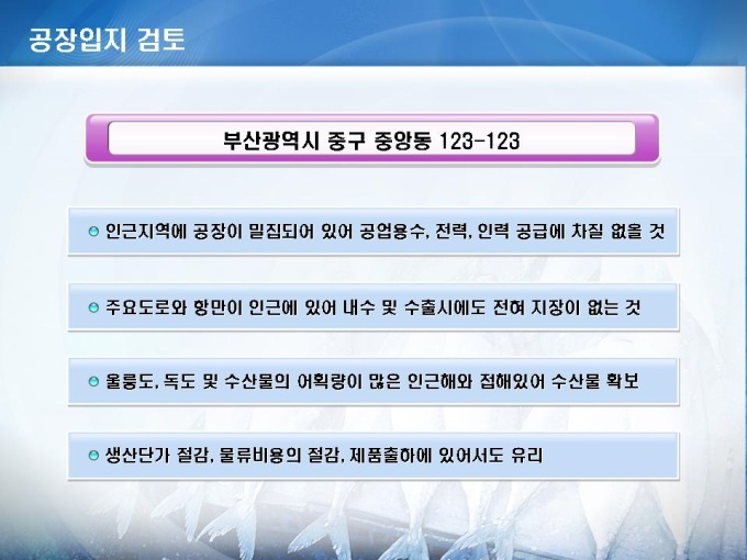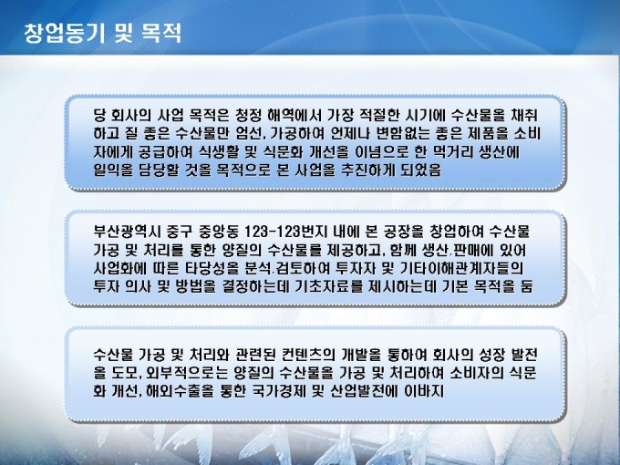 설립창업 사업계획서(수산물 가공, 처리)