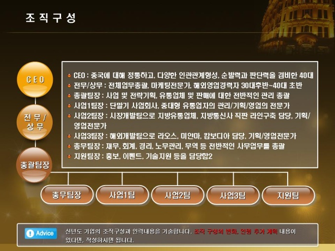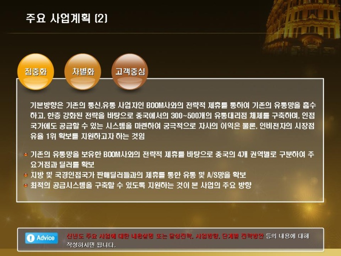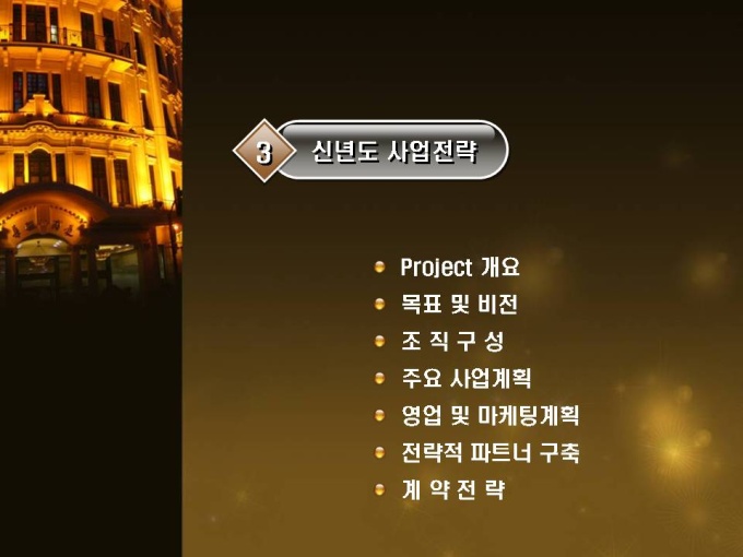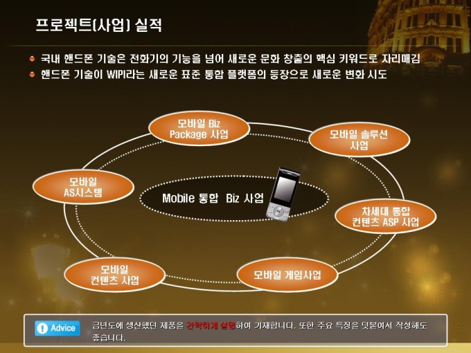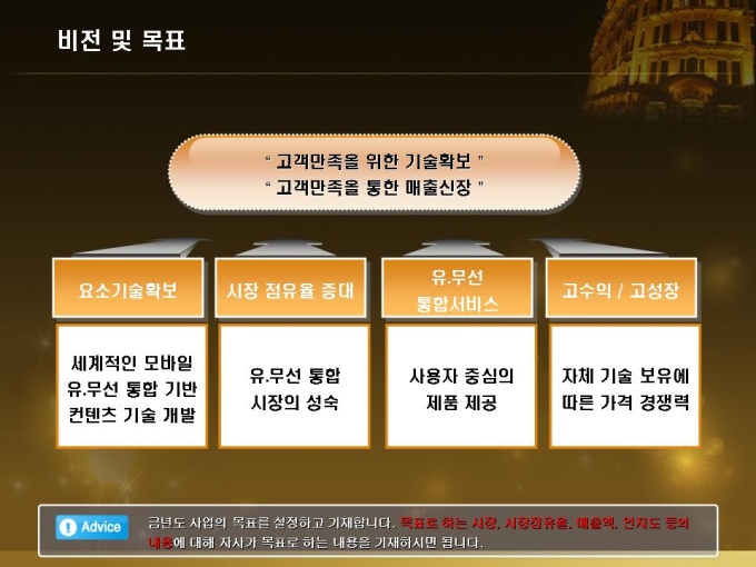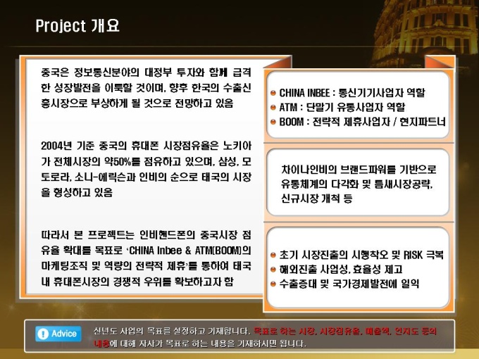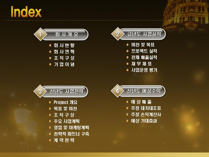 신년도 목표가 해외진출인 휴대폰 업체의 신년도 사업계획서입니다. 목차는 1.회사개요 2.금년도 사업실적 3.신년도 사업전략 4.신년도 예상수익으로 구성되어있습니다.