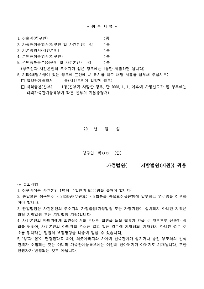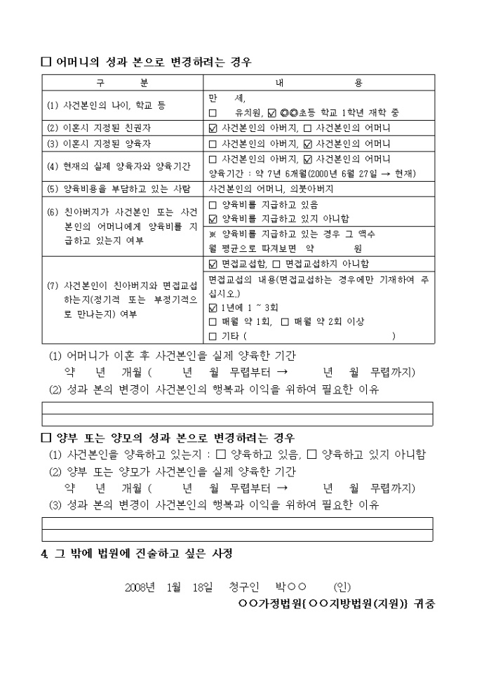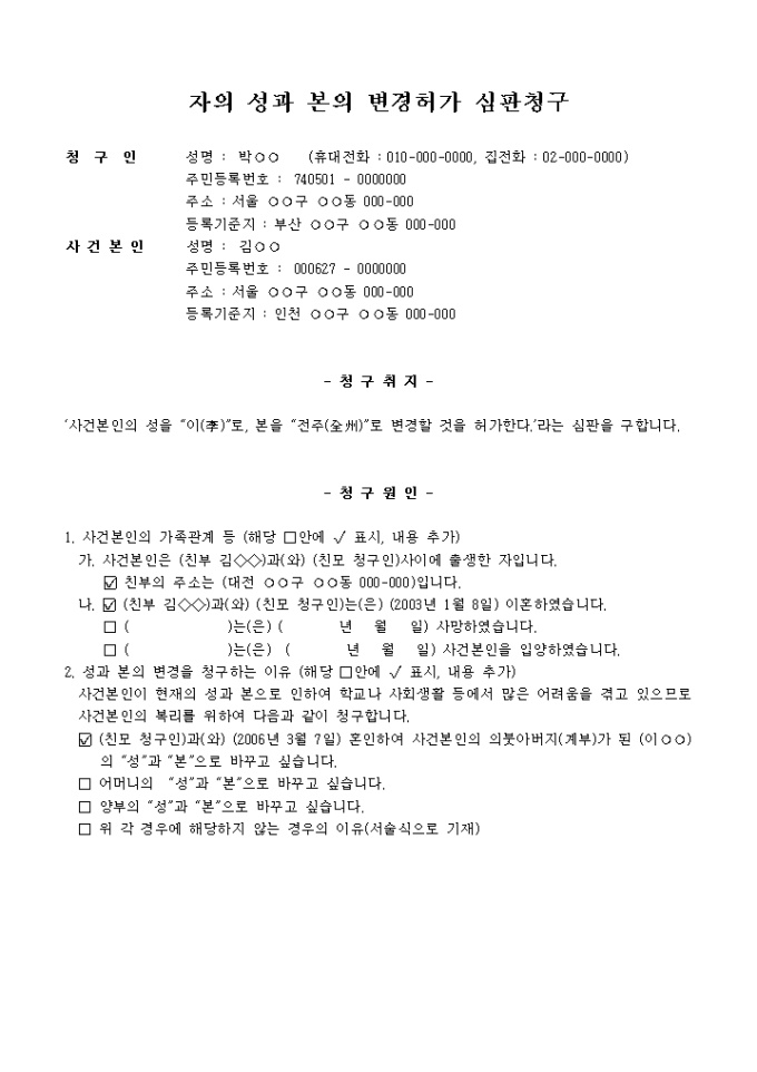 9,000원/월성을 변경할 때 사용할 수 있는 자의 성과 본의 변경허가 청구서입니다.