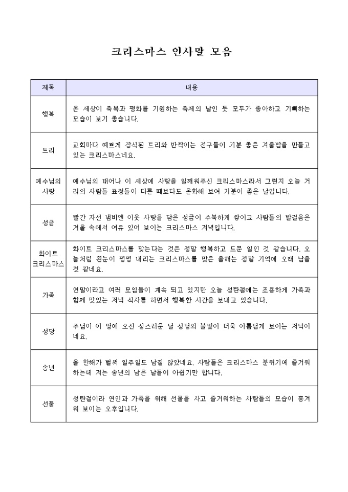 크리스마스 첫인사말 예제모음입니다.