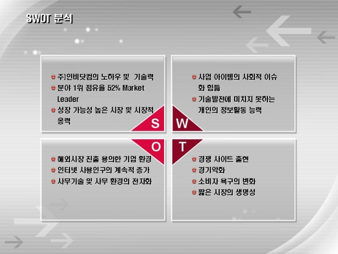 인터넷 컨텐츠 업체의 회사소개서입니다. 목차는 1.회사현황 2.사업연혁 3.시장분석 4.사업추진 전략으로 구성되어있습니다.