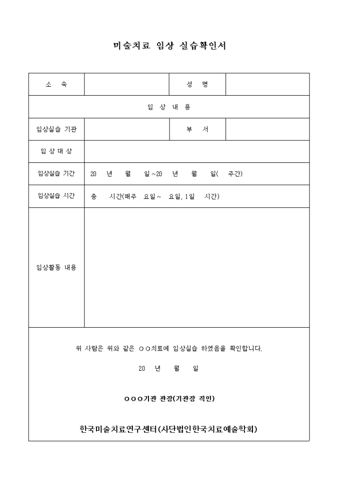 9,000원/월미술치료의 임상 실습 확인서입니다.