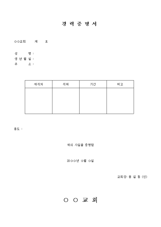 9,000원/월교회에서 사용하는 경력증명서 양식입니다.