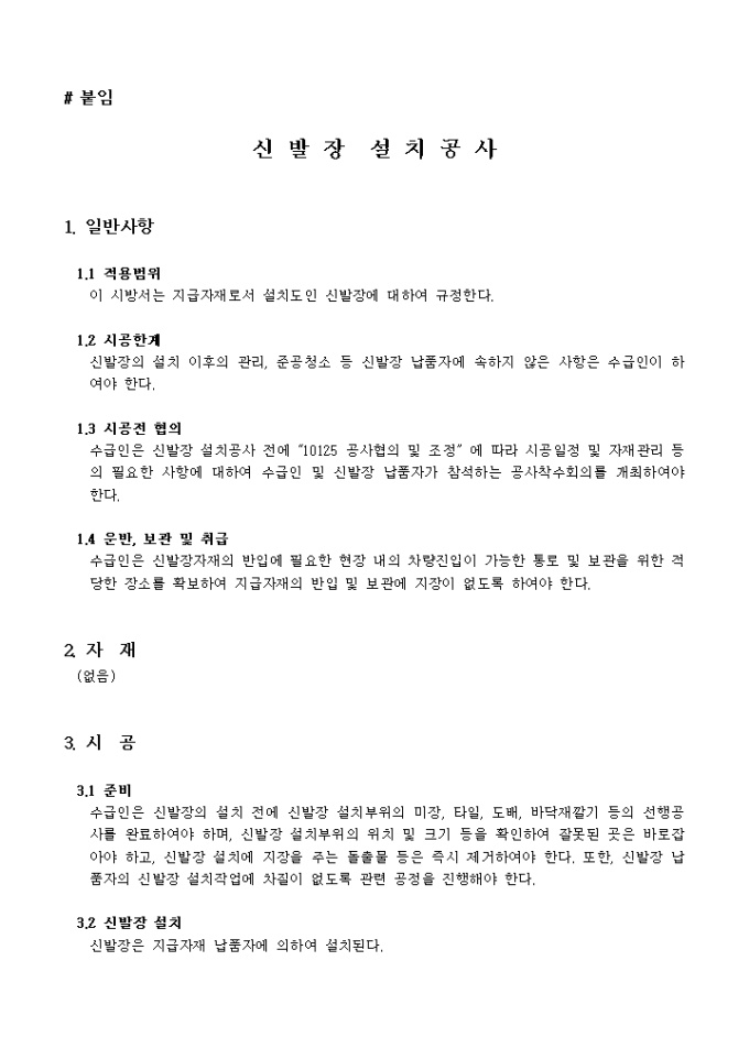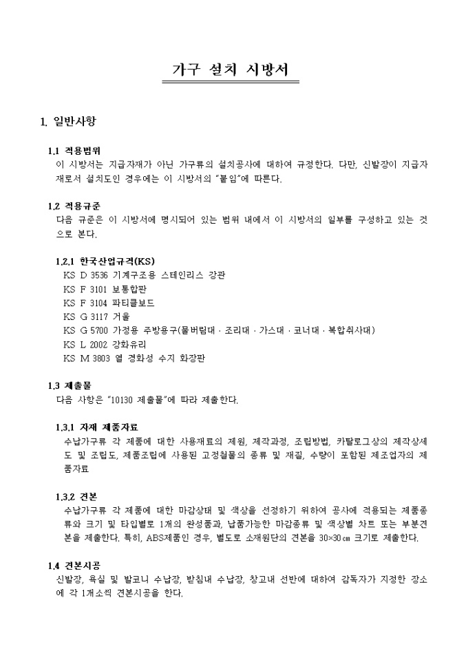 · 가구설치에 대한 인테리어 시방서 양식입니다.· 일반사항, 자재, 시공 등의 항목으로 구성되어 있습니다. 인테리어 업종 관련 서식들을 한눈에!인테리어업종 필수 서식 모음전 바로가기▶