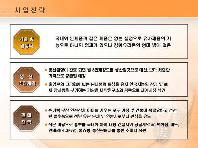 출입문 안전장치 개발 업체의 회사소개서입니다. 목차는 크게 회사현황과 사업현황으로 구성되어있습니다.
