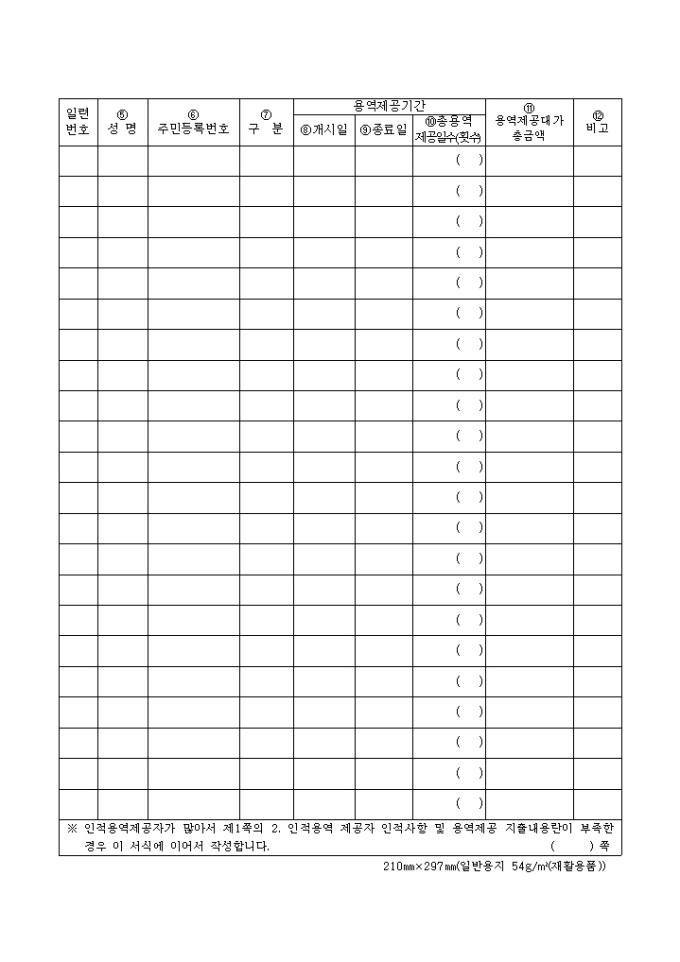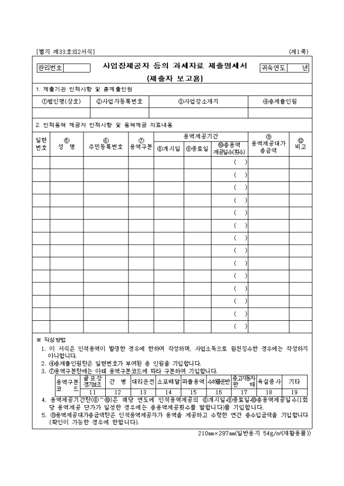 [2008년 연말정산]사업제공자 등의 과세자료 제출명세서
