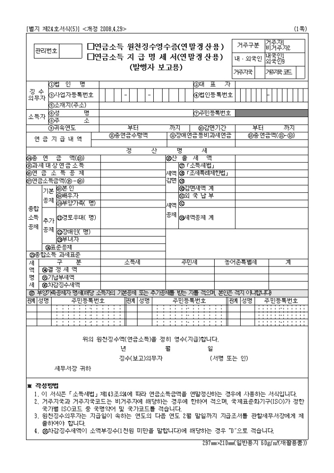9,000원/월[2008년 연말정산]연금소득 원천징수영수증(연말정산용)입니다.