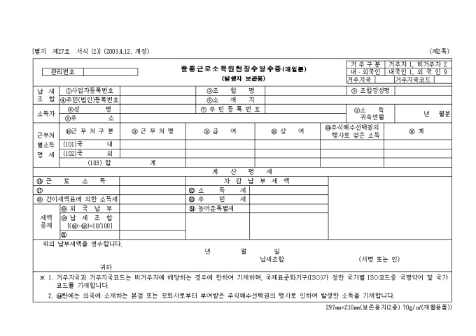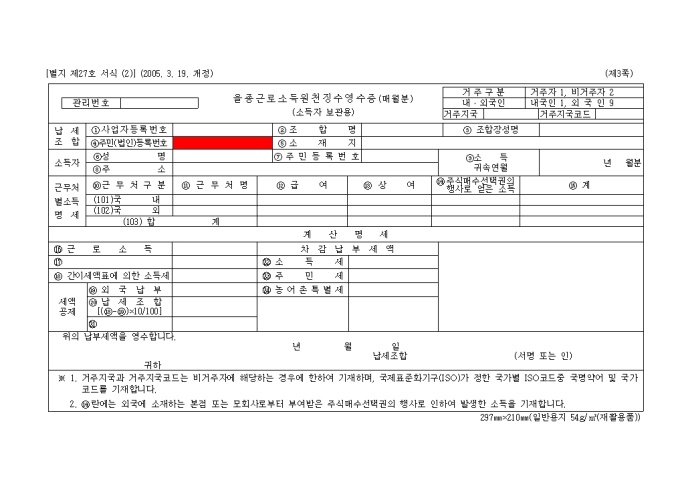 [2008년 연말정산]을종근로소득 원천징수영수증(매월분)