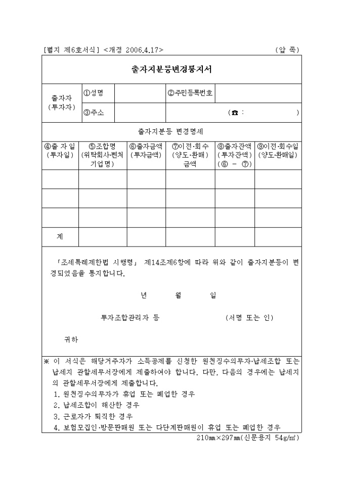 9,000원/월[2008년 연말정산]출자지분 등 변경 통지서입니다.