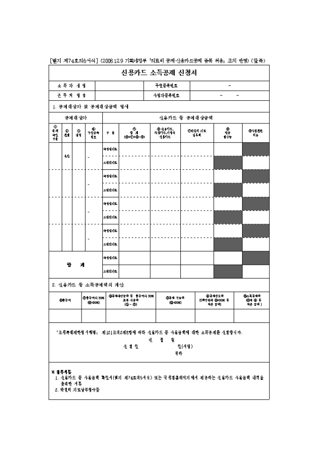 9,000원/월[2008년 연말정산]신용카드 소득공제 신청서 입니다.