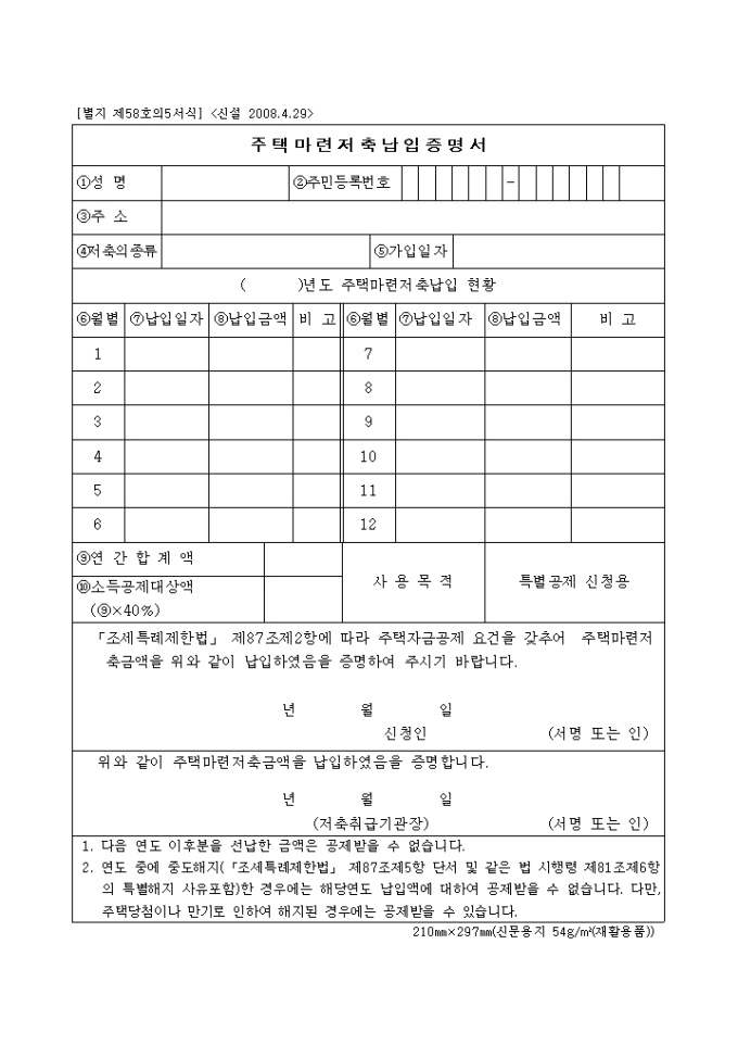 9,000원/월[2008년 연말정산]주택마련 저축납입 증명서 입니다.