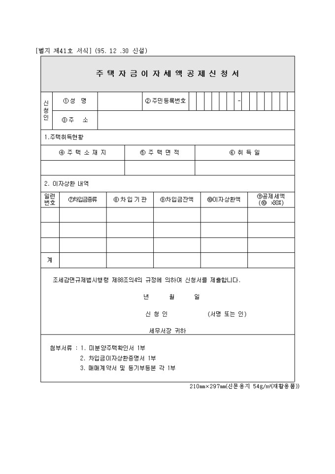 [2008년 연말정산]주택자금이자 세액공제 신청서