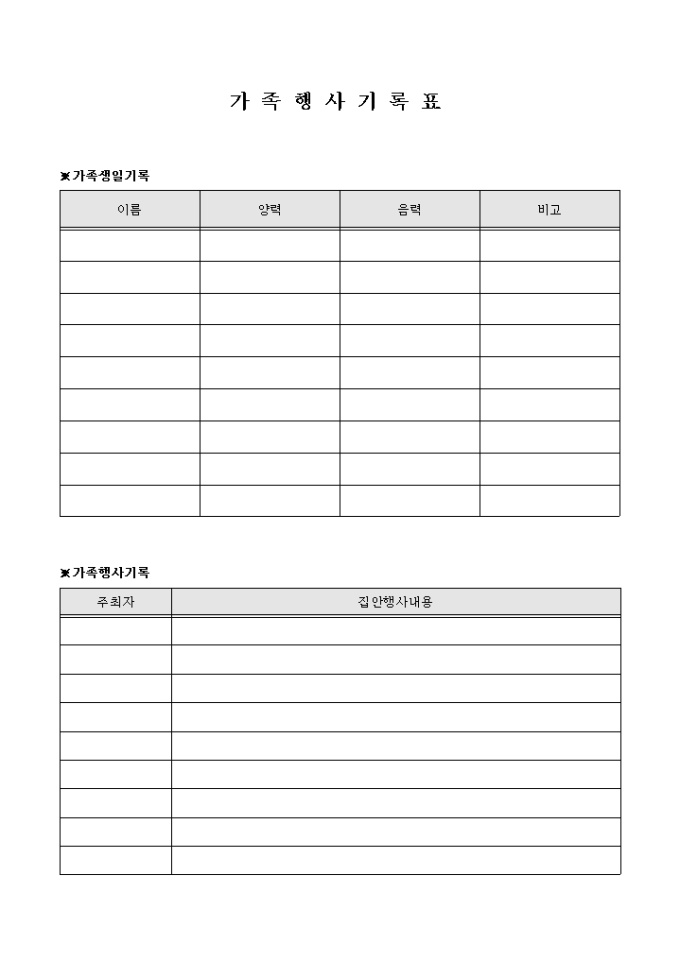 9,000원/월가족들의 생일과 행사일을 기록하는 서식입니다.