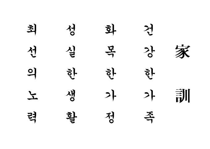 건강, 화목, 성실, 최선을 다하자는 내용의 가훈입니다.