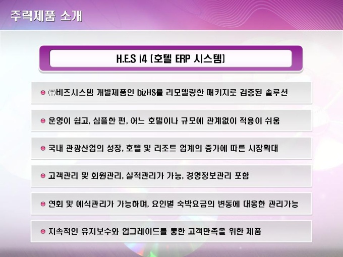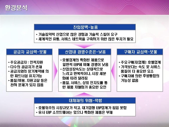 호텔용 ERP 소프트웨어 개발업체의 매출증대를 위한 컨설팅 보고서입니다. 목차는 1.기업 일반현황 2.기업진단 및 분석 3.문제점 및 개선방안 4.전략실행 및 지도 5.기대효과 및 결론으로 구성되어있습니다.