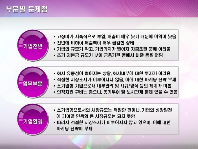부문별 문제점