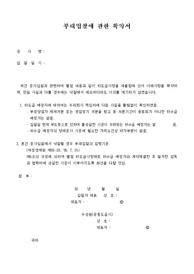 부대입찰에 관한확약서