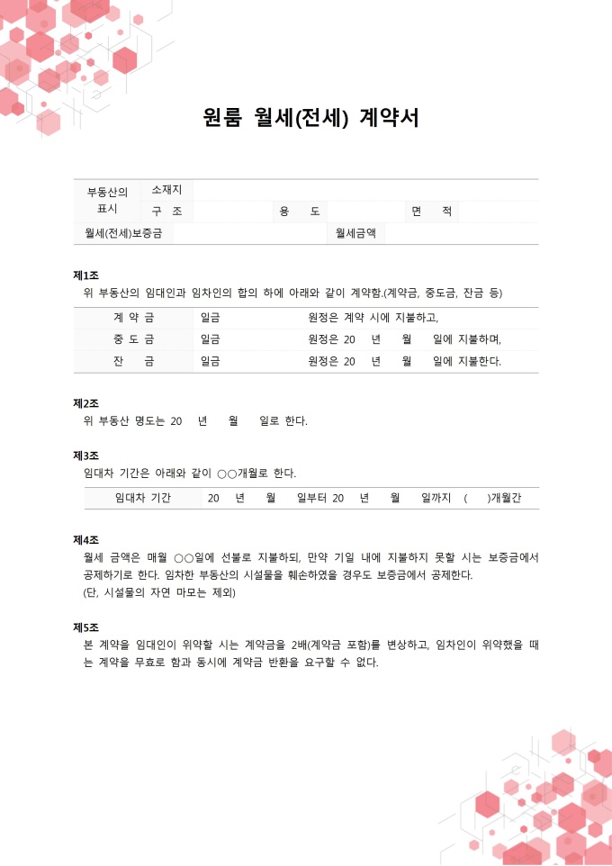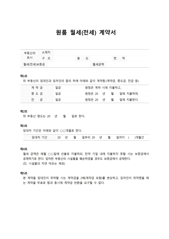 • 계약서 샘플 > 부동산 > 원룸