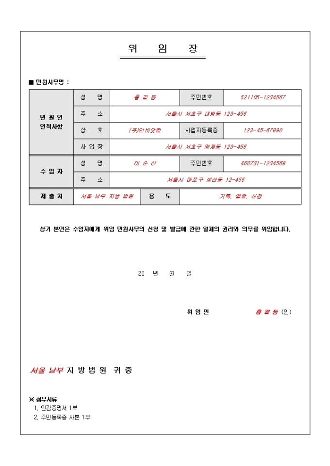 오늘 다운받은 서식은 법정서류에 기입되어있는 정보까지 체계적으로 입력...