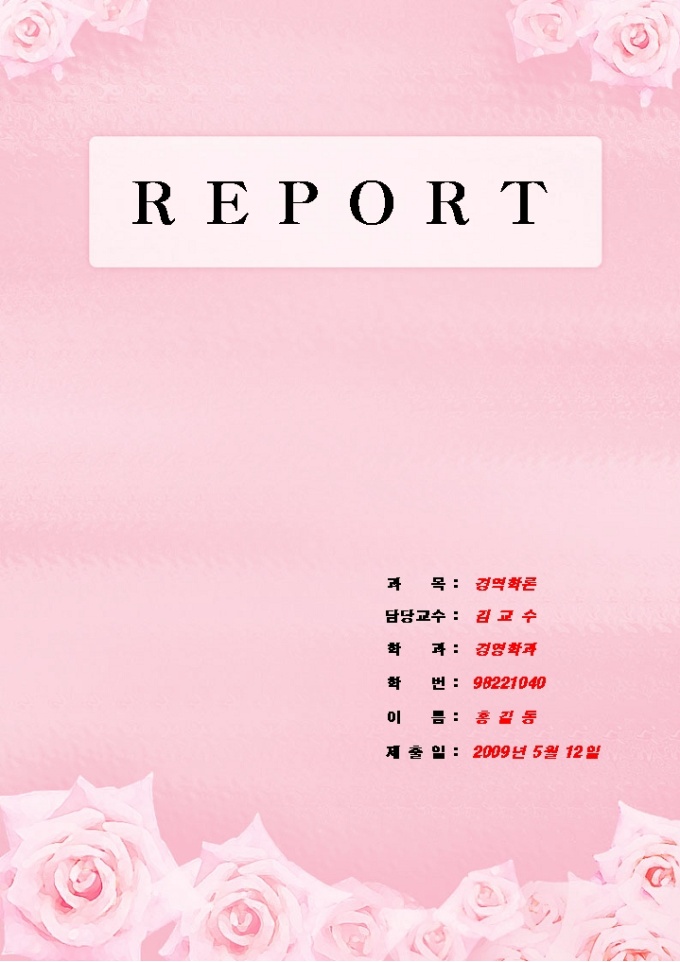 레포트 표지(분홍색바탕에 꽃무늬)