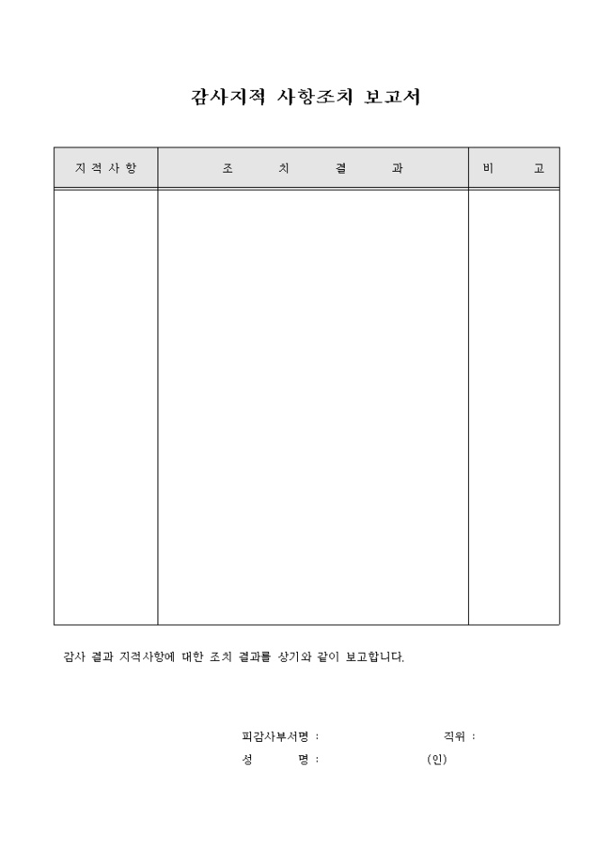9,000원/월감사 결과 지적사항에 대한 조치 결과를 보고하는 감사지적사항 조치보고서 양식입니다.