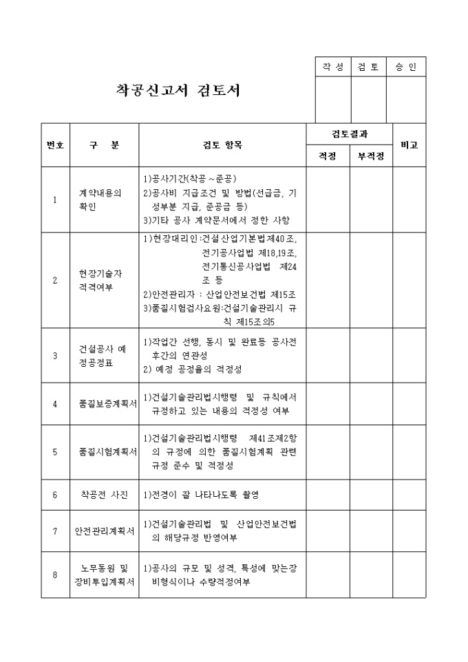 착공신고서, 검토서